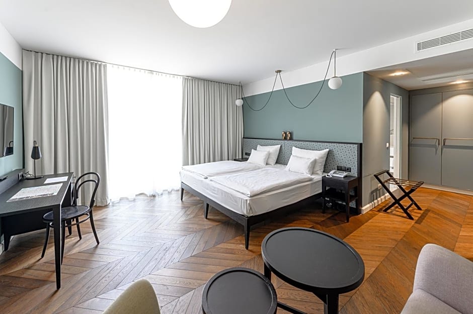This stylish double room in the new building has air conditioning, sofa and soundproofing.